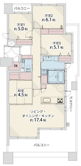 間取内容 LDK17.4帖 和室4.5帖 洋室5.1帖 洋室6.1帖 洋室5.0帖